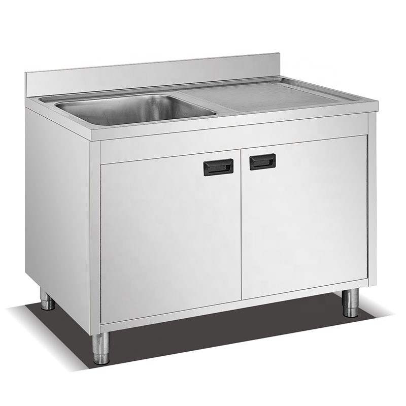 Ta profesjonalna konstrukcja to idealne rozwiązanie dla lokali gastronomicznych, które cenią sobie porządek i funkcjonalność. Łączy w sobie cechy głębokiego zlewu z ociekaczem oraz pojemnej szafki, pozwalając na ukrycie detergentów lub naczyń pod blatem roboczym. Dzięki zwartej konstrukcji o szerokości 150 cm, doskonale wpasuje się w mniejsze i średnie ciągi technologiczne.