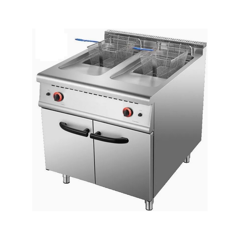 Profesjonalna Frytownica Dwukomorowa Wolnostojąca z Szafką - Inox - Gazowa