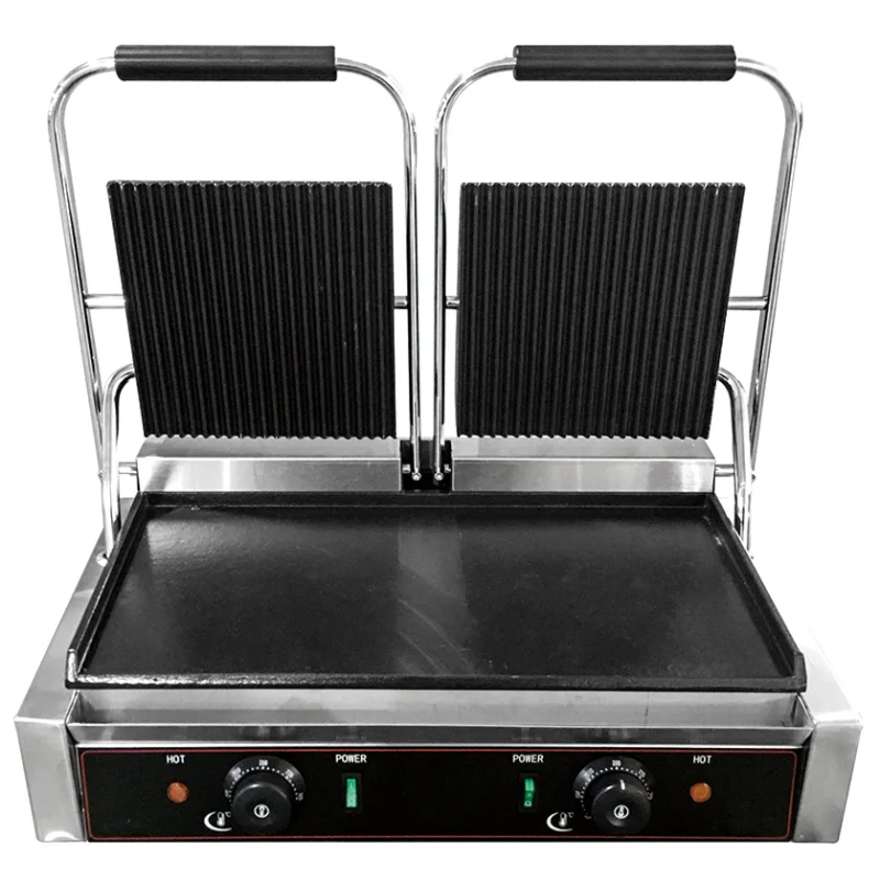 Profesjonalny Grill Kontaktowy Podwójny - Płyta MIX (Góra Ryflowana / Dół Gładki)