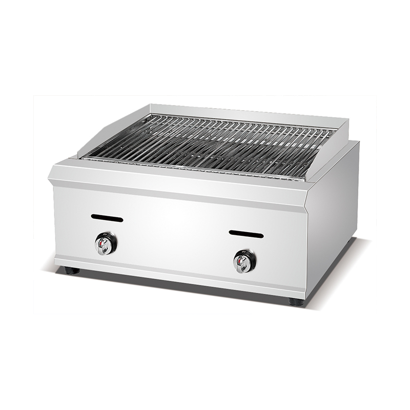 Solidny, nachylony ruszt: Specjalnie zaprojektowany ruszt jest ustawiony pod kątem, co ułatwia spływanie nadmiaru tłuszczu do rynienki ociekowej, ograniczając powstawanie dymu i ułatwiając pracę.